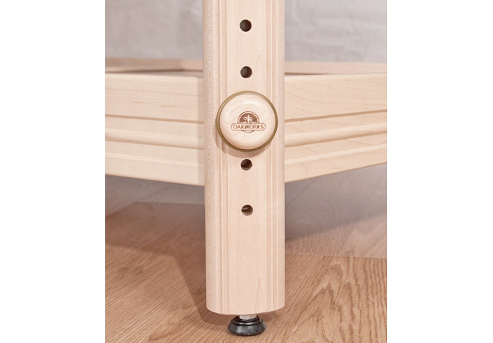 The Clinician™ Series just got better, and now comes standard with a removable and replaceable padded top. The Flat Top option is all that you need for some massage modalities and is the most affordable top option available from Oakworks. Our selection of padding and upholstery choices all but guarantee that your clients will enjoy every second of their massage experience and our superior construction ensures lasting quality at an unbeatable price. This manually adjustable spa table saves electricity, and the strength of Oakworks' Interlock leg extension system gives you the stability that guarantees you and your client's peace of mind. The Adjustable Lift system is the most economical choice for your practice, and it features an open shelf underneath to store all of your massage equipment and accessories. The Oakworks leg extension system uses one adjustment knob instead of two, making adjustments easier without compromising the strength or integrity of the table. The knob itself is reinforced with a t-nut and surrounded by a padded rubber grip that is designed to resist dirt and oil accumulation. A convenient storage shelf provides the perfect place for accessories, lotions, oils or anything you need close at hand. Upgrade to the optional cabinet allowing you to choose door designs to create exactly the look you want.