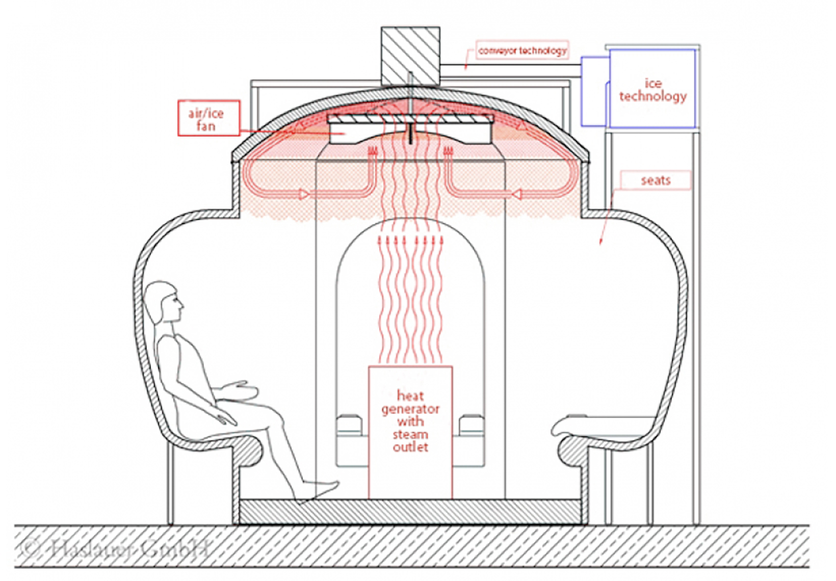 Too much heat can have a negative impact on the body and its widely acknowledged that its essential whilst bathing to cool down between heat experiences. The Prissnitz Bath®, named after the guru of water therapy, Vinzenz Prießnitz, allows the guest to both heat and cool in the comfort of one room. Between periods of heat generated by steam, intervals of cooling occur either through refreshing water or ice showers distributed via a ceiling fan (depending on the operators settings). This hot and cold alternating action will assist the immune system and introduce a unique yet effective wellbeing experience to your facility and guests.